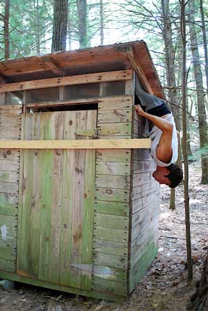 While their team leader took a privy stop, mischievous inspiration struck a few anonymous crewmembers, who deftly performed some rapid construction that forced Greg to seek alternative modes of exit.