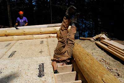 In the article, I mentioned one instance where a member of the building crew took advantage of the time-lapse camera they had focused on the site to crawl across the logs and look like a worm in slow motion (compared with the frenzied sped-up actions of the rest of the crew). Check out the video and watch the logs on the left side starting at 1:45. I swear, these students remind me so much of my co-workers from college at the University of Maryland’s Outdoor Recreation Center. Good times, good times…